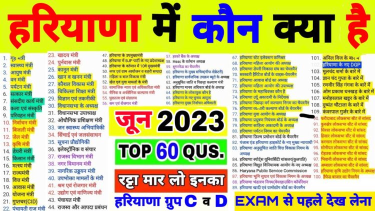 हरियाणा में कौन क्या है | Updated हरियाणा मन्त्रिमण्डल | स्पेशल HTET | CET exm